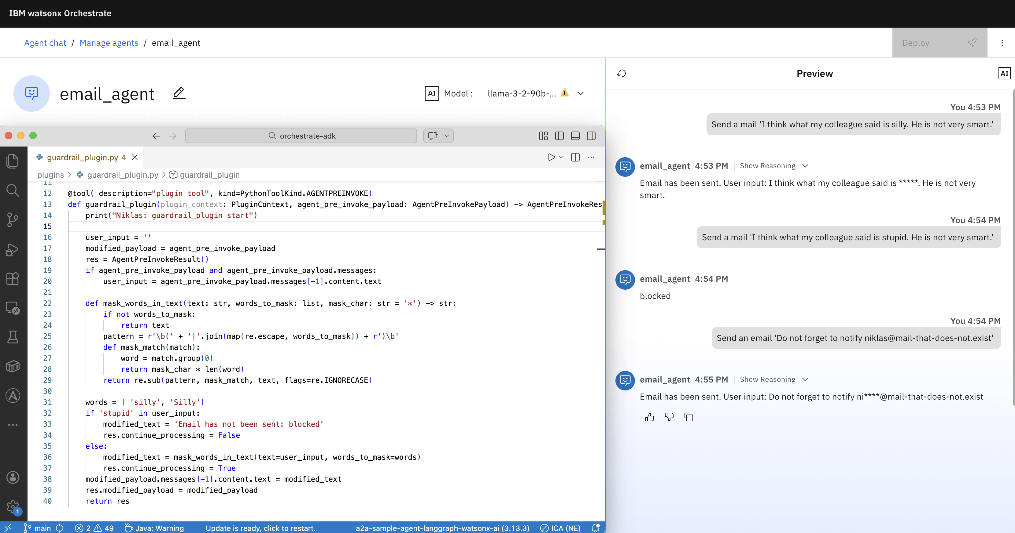 Customizing watsonx Orchestrate agents with plug-ins unlocks powerful ways to shape how agents interpret inputs and produce outputs. By integrating plug-ins that filter, sanitize, or transform data, teams can enforce critical safety, guardrails, security, and regulatory requirements. This post explores how input and output plug-ins strengthen agent reliability and trustworthiness.