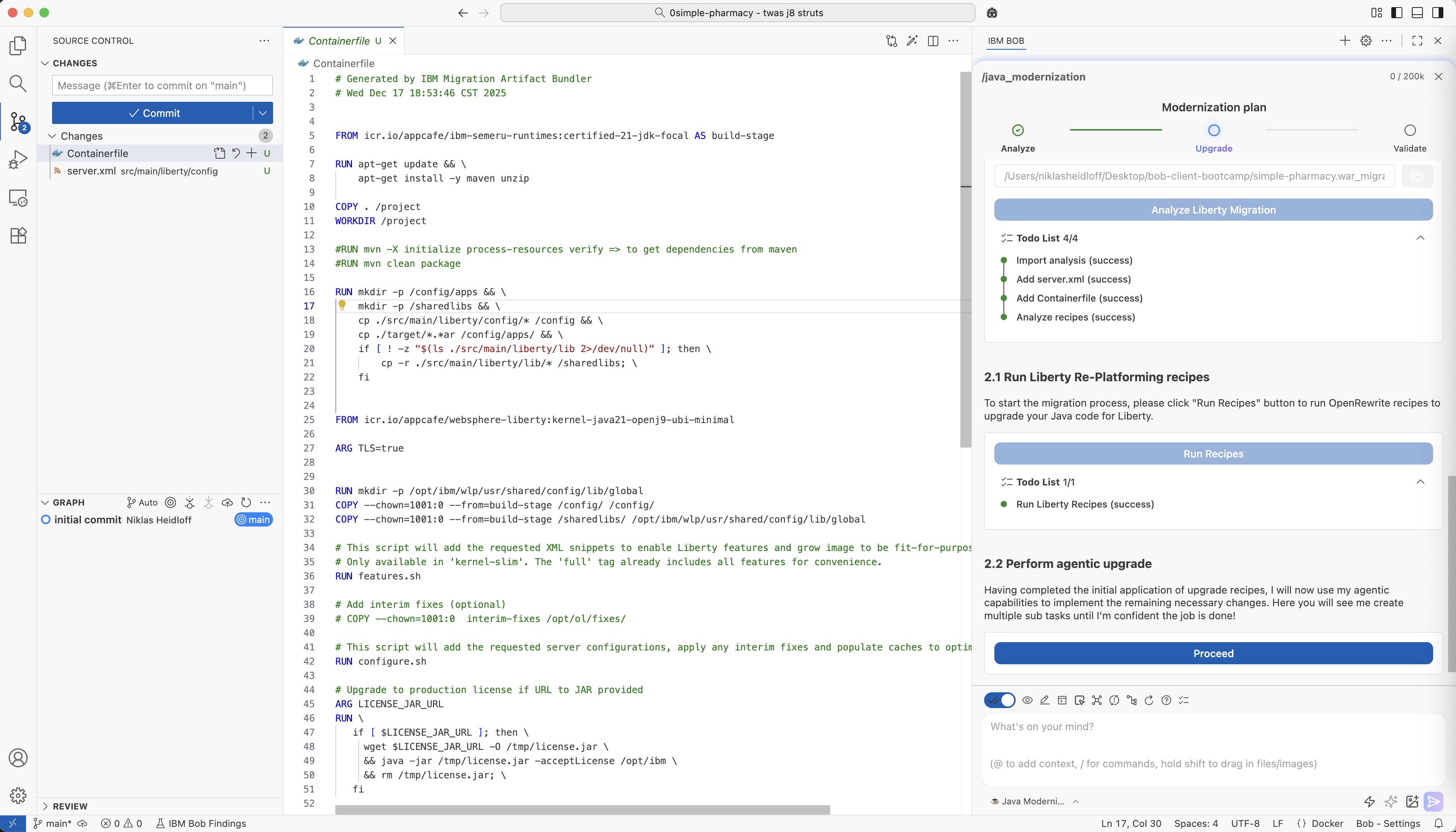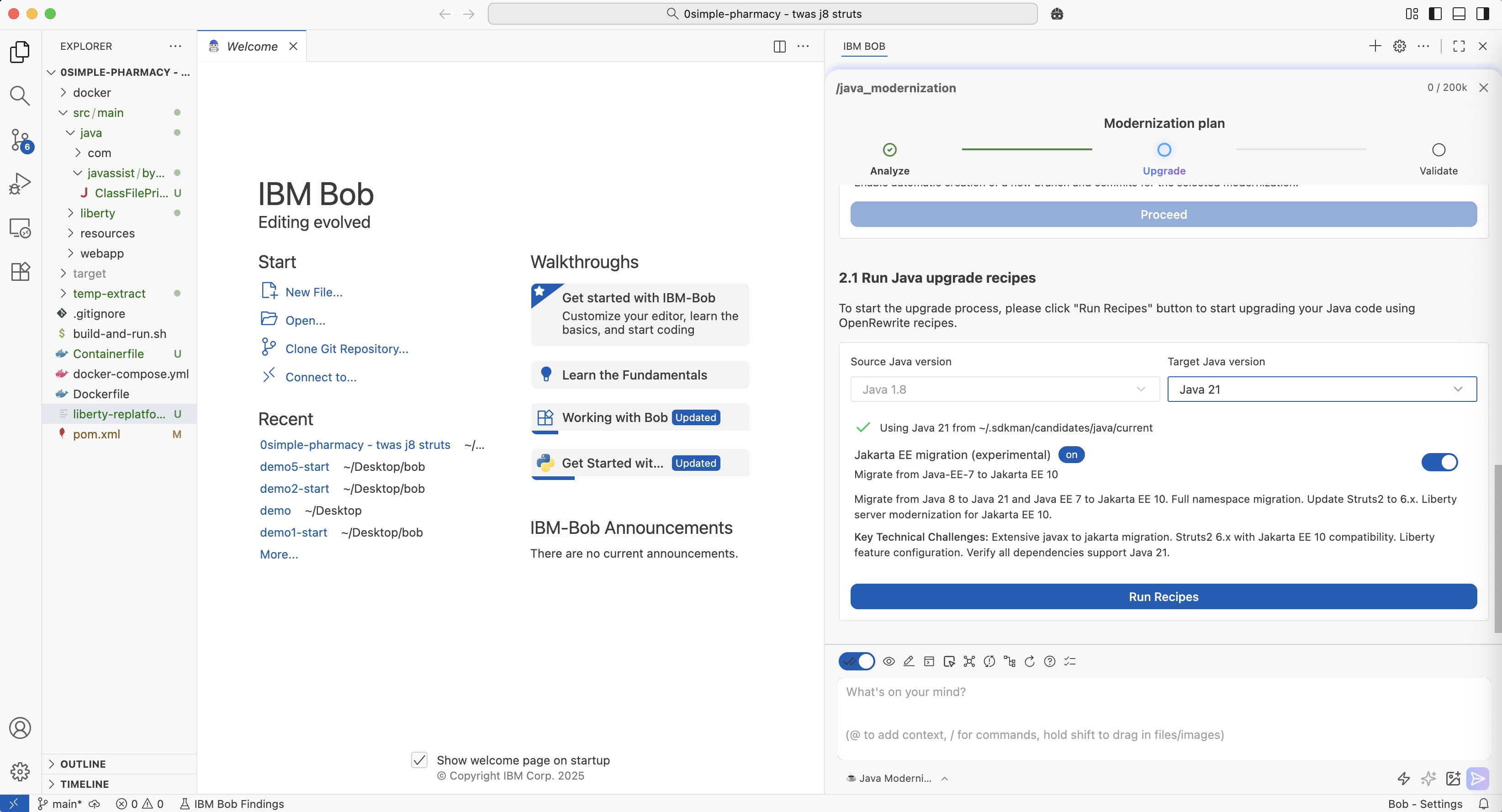 Until recently, modernizations of legacy projects have often been challenging. With AI-based engineering tools it has become easier. This post describes how to convert WebSphere applications into OpenLiberty applications with newer Java runtimes via IBM Bob.