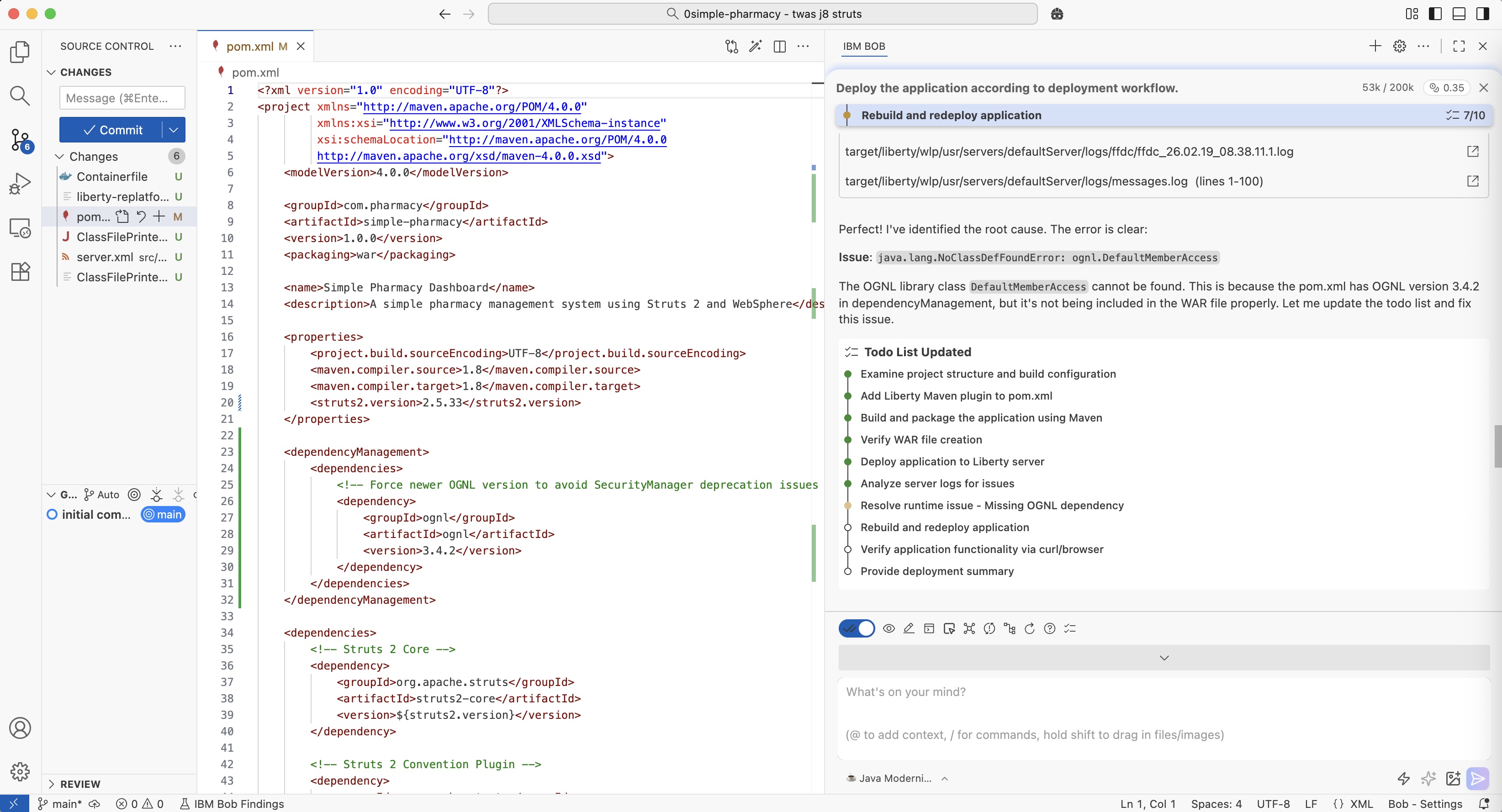 After a couple of iterations, the application has been updated successfully to OpenLiberty.