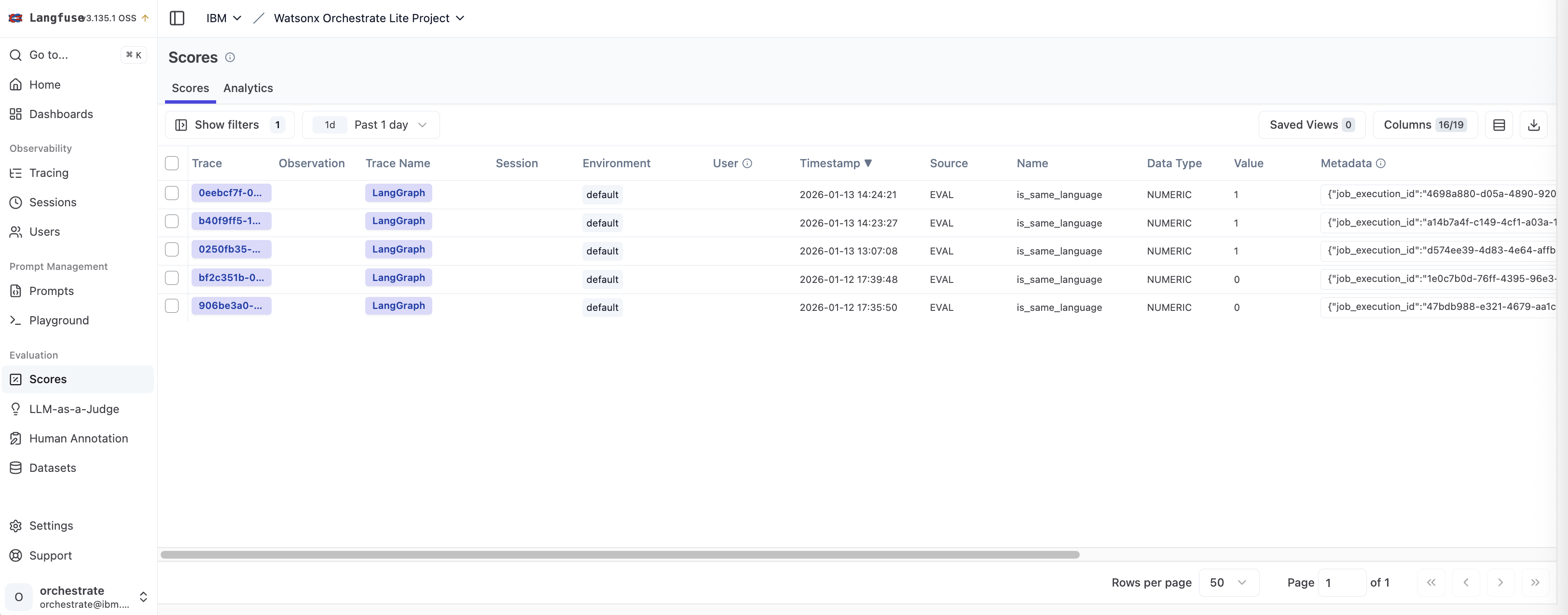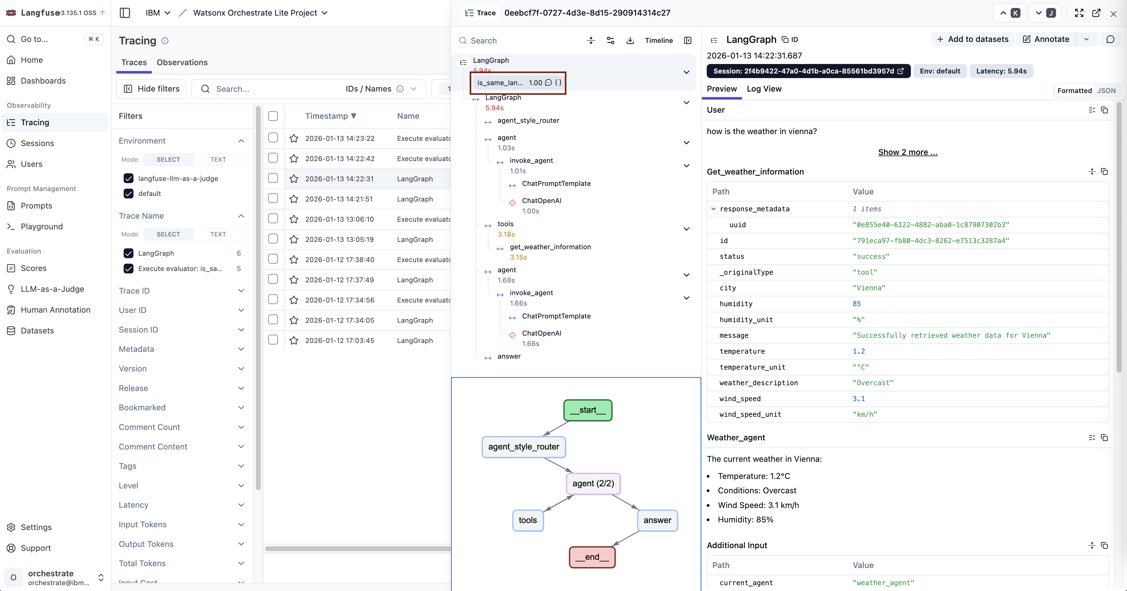 Watsonx Orchestrate is IBM’s platform to build and run multi-agent enterprise systems. It uses Langfuse for observability via OpenTelemetry.