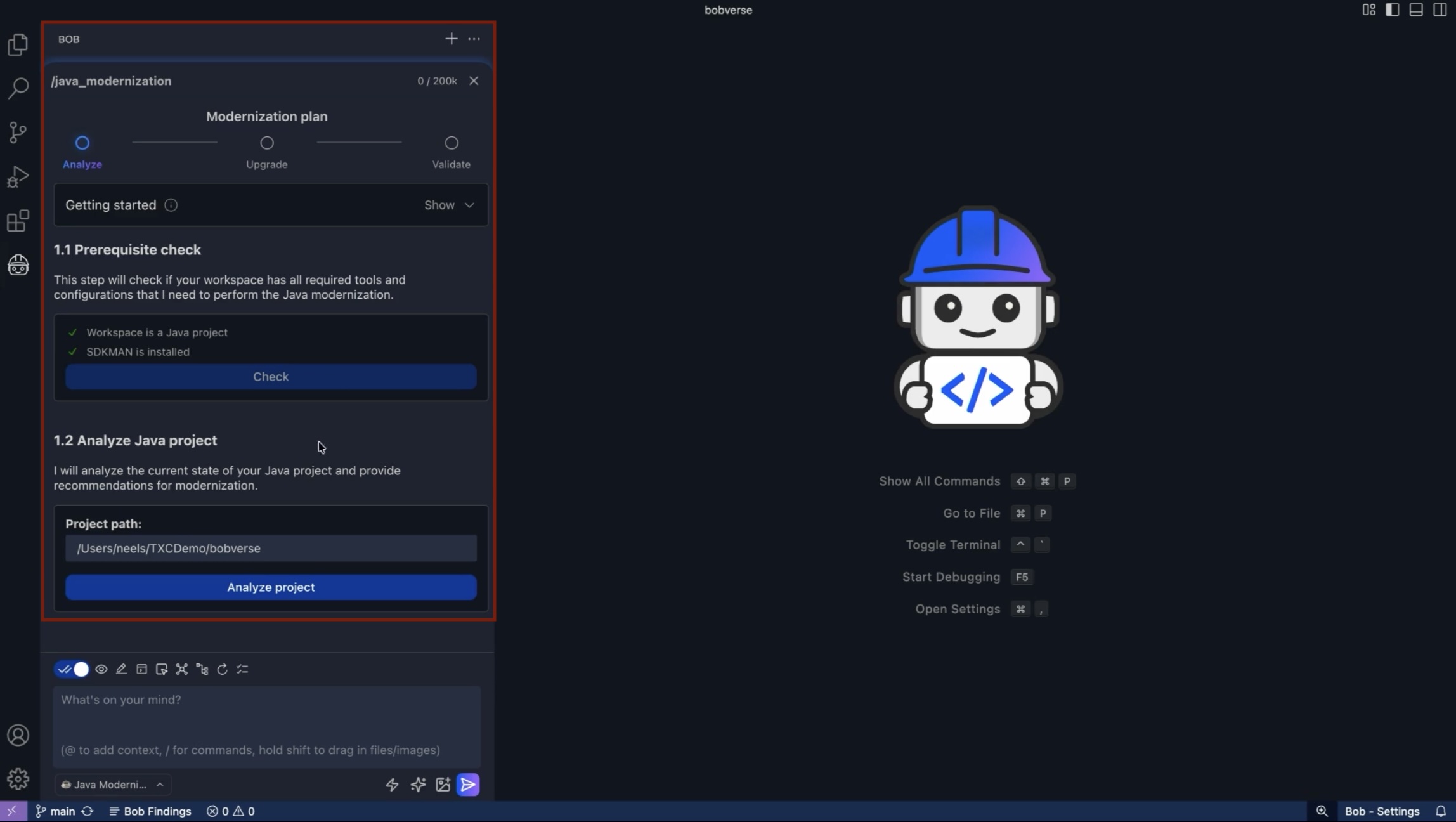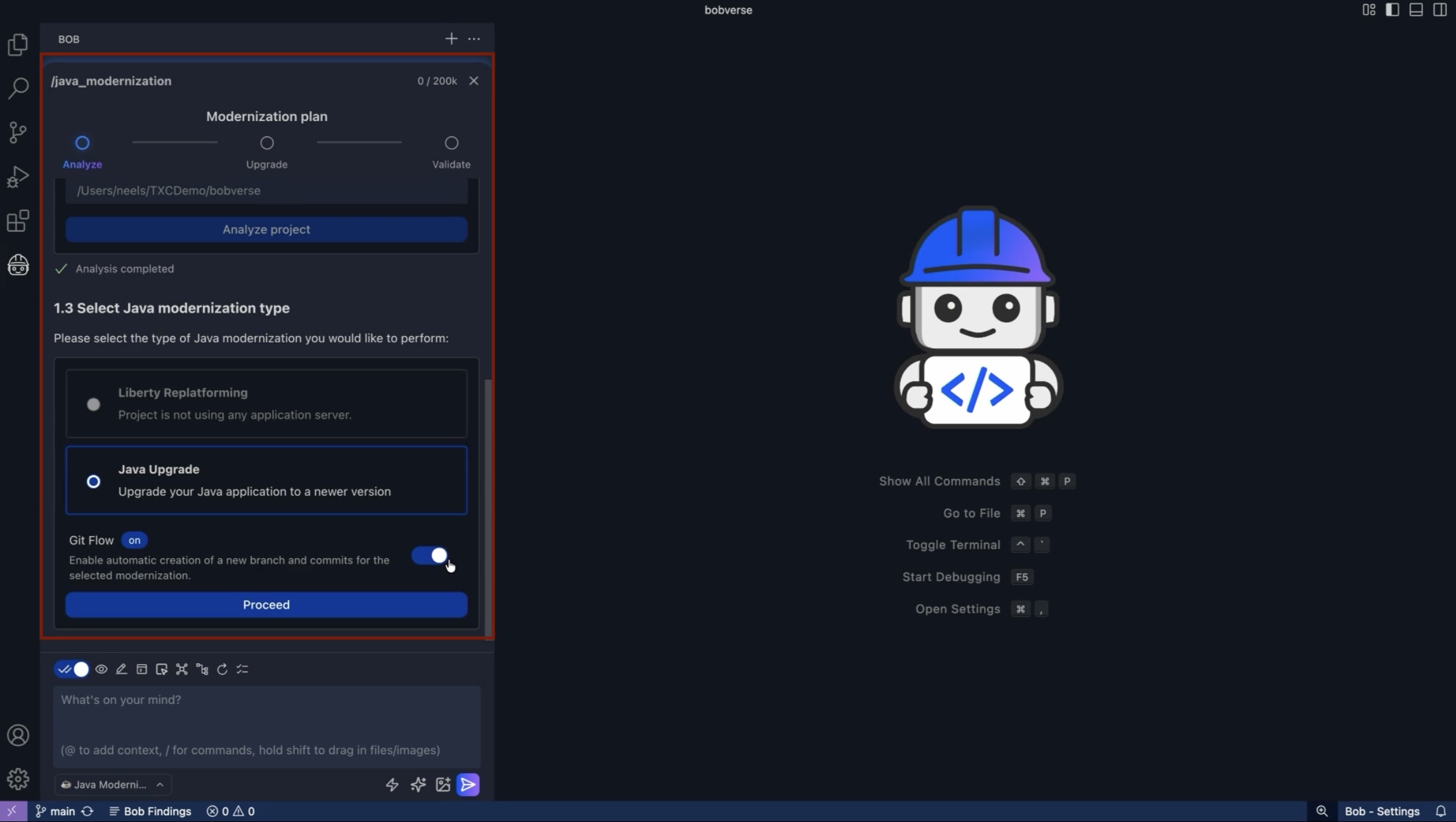 Project Bob can also be used to modernize Java applications. In the first step projects are analyzed.