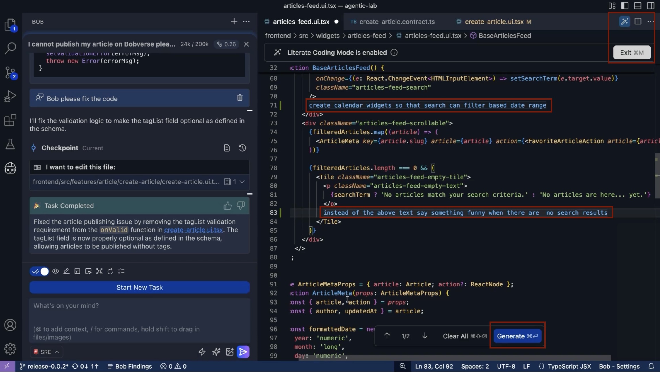 Literate Coding is a developer environment enhancement that blends clarity of documentation with the precision of code. It allows developers to reference multiple context points across files […], edit code using natural language […] and preserve developer intent.