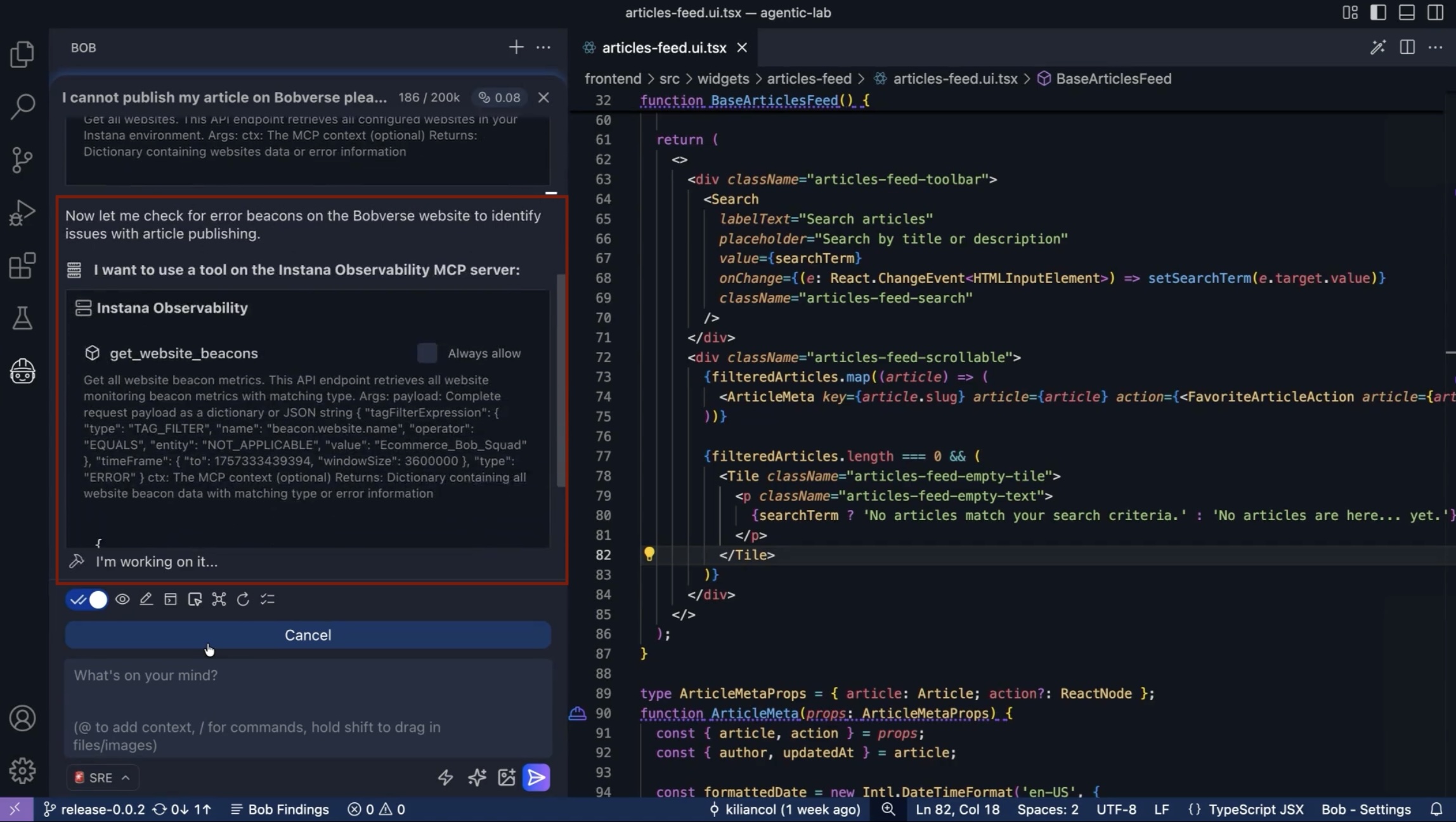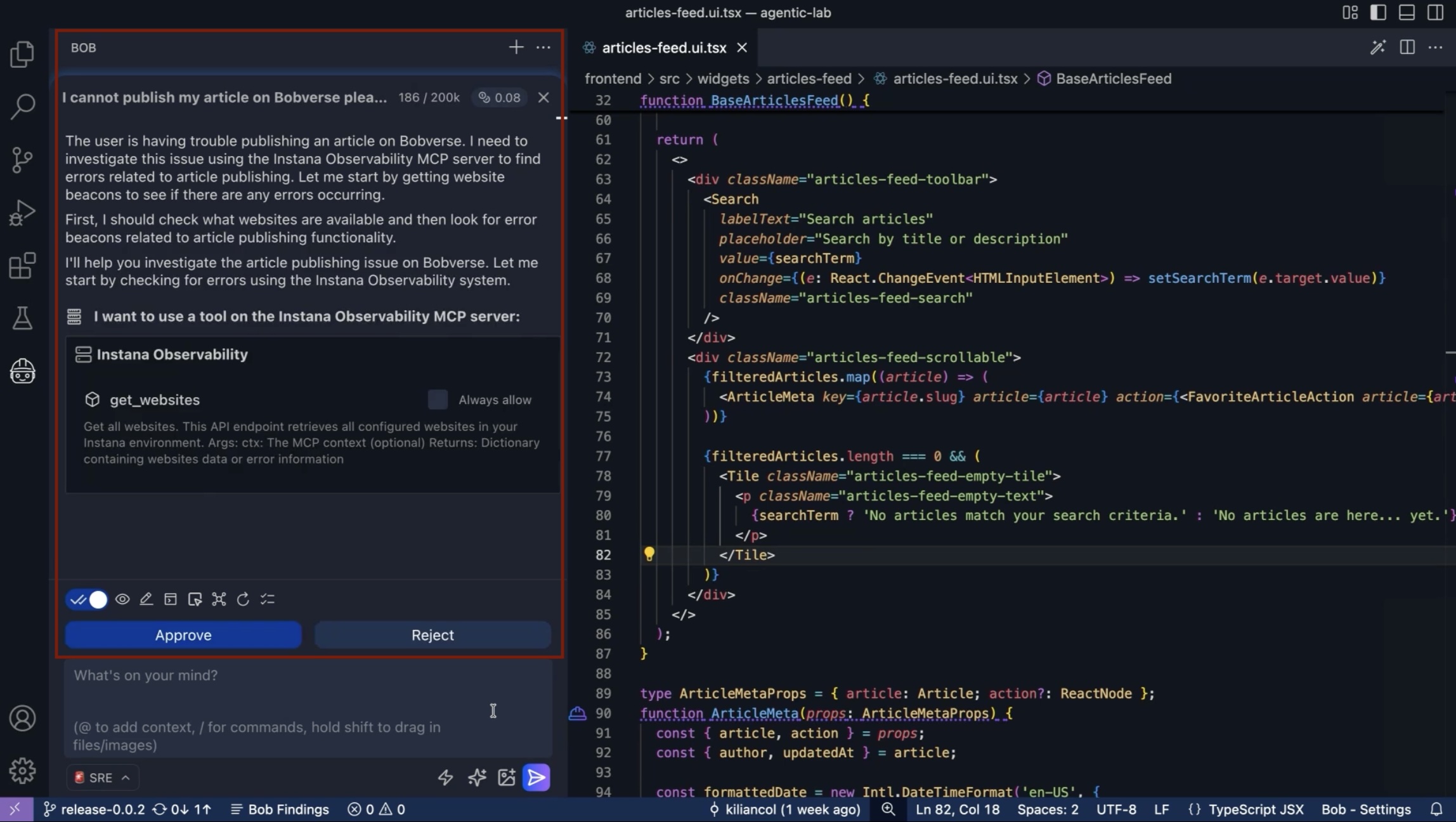 In project Bob tools can be added to the chat in the IDE. The keynote demo shows how to leverage a tool provided by an IBM Instana MCP server which can detect issues with Node.js/TypeScript/JavaScript based applications.