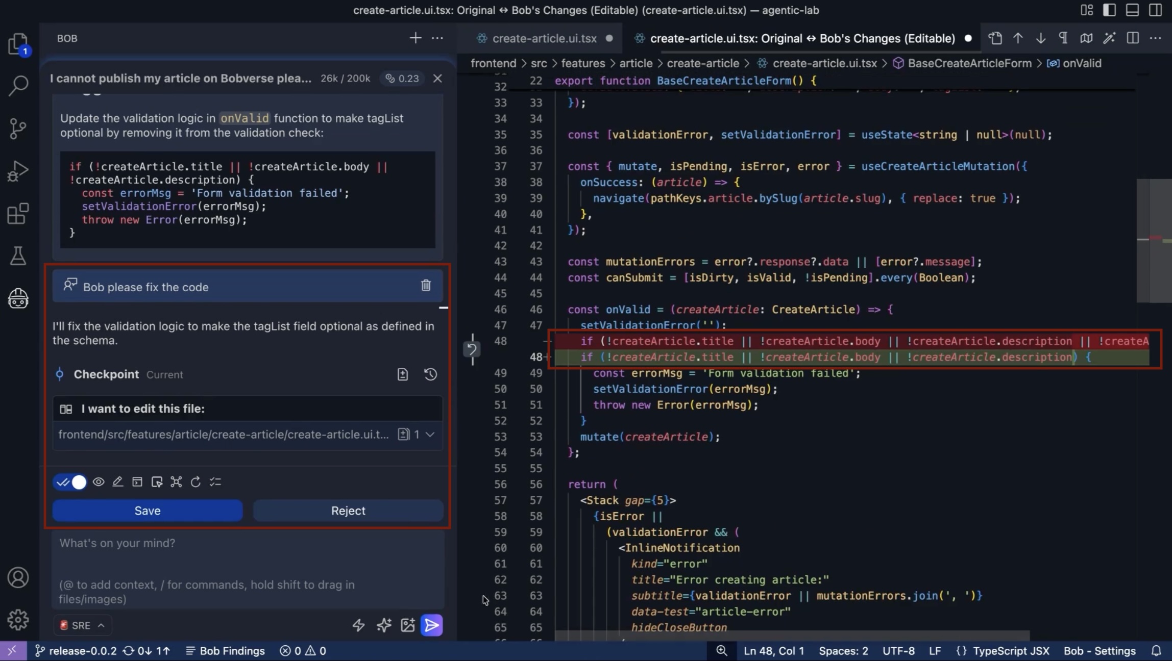 Another example is shown on the project Bob landing page. Developers can select code and click on an ‘Edit’ option inline.